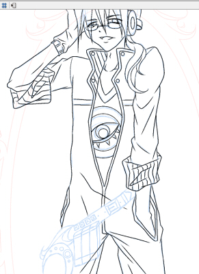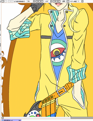 黄色いメカニックのお兄さんを描いております、やはり線画はめんどいだけであんま好きじゃない……